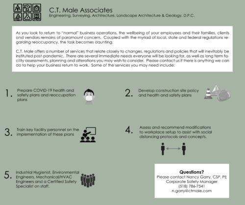 Please know that during this difficult time we are here for our clients. Our professional staff of engineers, surveyors, industrial hygienists and certified safety professionals can respond, in emergencies if necessary, to critical infrastructure work, incidents that require existing conditions documented, and assistance with public utilities and public works operations.
