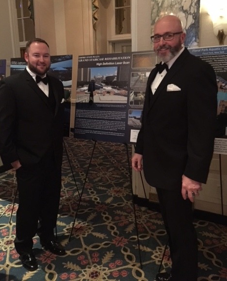 The award winning project was for a high definition 3D laser scan that was performed on the steps, benches and railings of the Grand Staircase at the Empire State Plaza in Albany, NY. Over the past 40 years, the open air staircase has developed cracks in the joints that allow particles to settle in the treads and benches, causing leaks and water damage. The rehabilitation project includes the complete removal of all 2,262 granite stair treads and benches, replacement of waterproofing, installation of new light fixtures and hand railings, and then replacement of all granite and marble components.