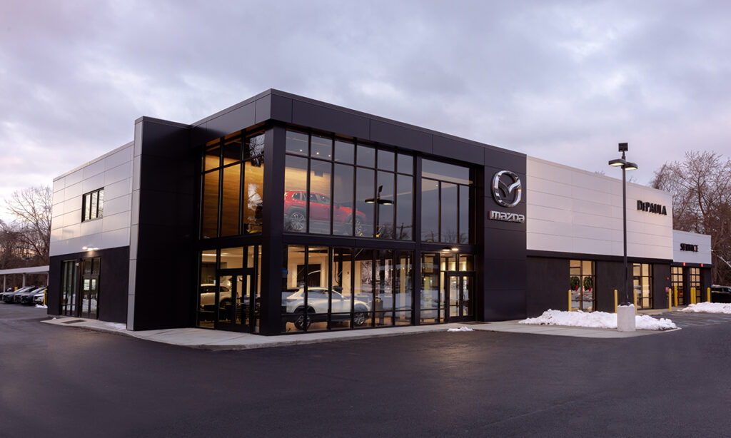 Site-specific design integrates Mazda’s Retail Evolution dealership design standards to support a successful local franchise and enhance the customer experience.