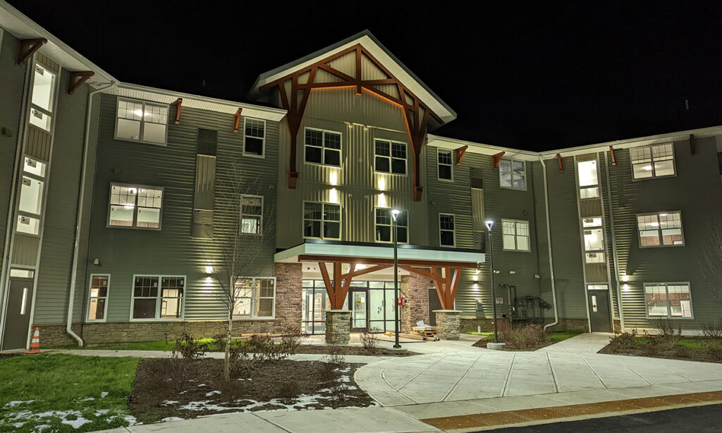 Friendship Lodge is a proposed 64 bed affordable and mental health housing project located in Johnstown, NY. Conceived as a 3 story wood framed structure, the project incorporates elements of local vernacular design to create an inviting and familiar place for residents. The project is funded through a 4% Low-Income Housing Tax Credit through NYS Homes and Community Renewal.